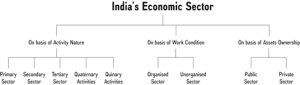 - Public Sector: Ownership of assets in government hands. For example: Indian Railways, BSNL etc.