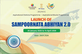 - Context: Launched end-January 2026, Sampoornata Abhiyan 2.0 is a national action to saturate essential services across under-developed districts and blocks, focusing on last-mile delivery of government services.