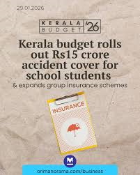 - Context: the Kerala Budget 2026-27 announced life and accident insurance coverage for school children and informal workers. This initiative expands the social safety net for vulnerable groups.