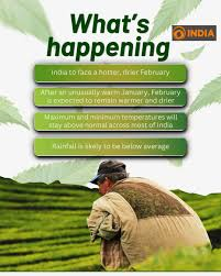 A meteorological forecast anticipates a hotter and drier February 2026 in India, posing risks to wheat and other winter crops amid below-average rainfall conditions.