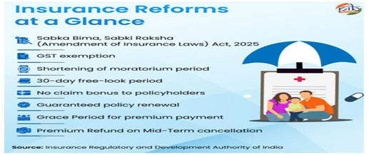 • Consumer Safeguards: Maximum penalty for non-compliance enhanced to ₹10 crore; introduction of a 30-day “free-look” period for policies.
